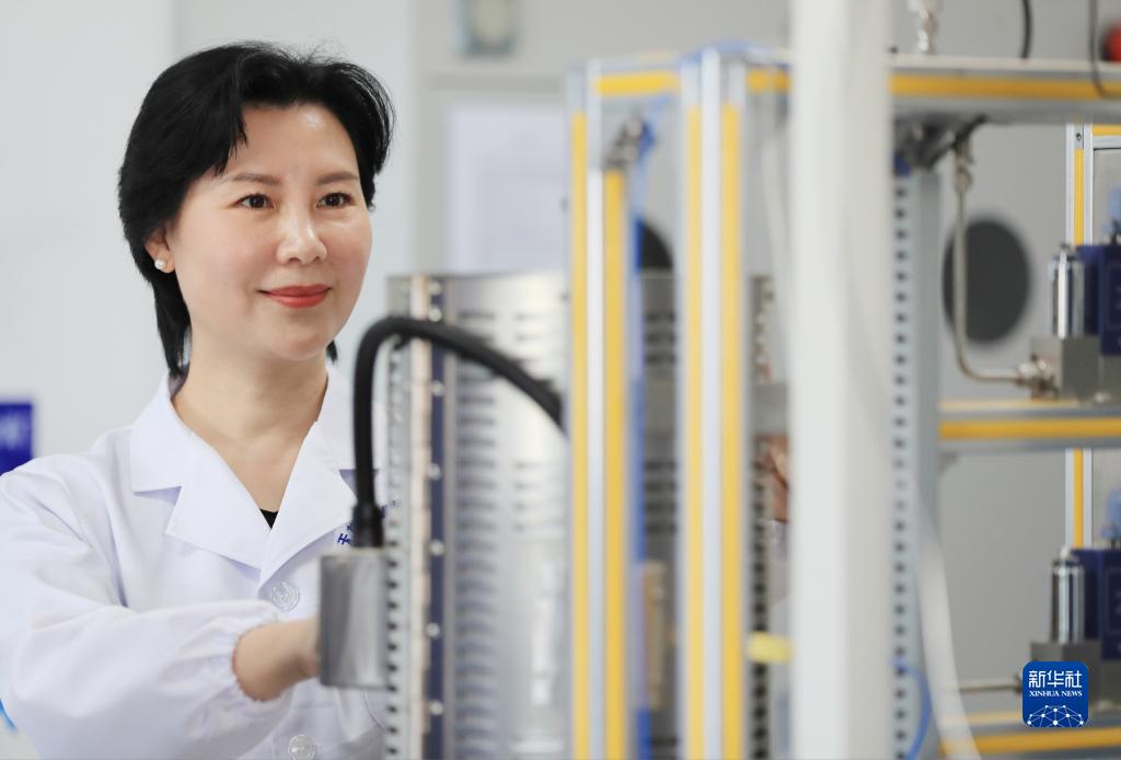 于吉红在实验室内操作仪器(2022年8月16日摄)。新华社发
