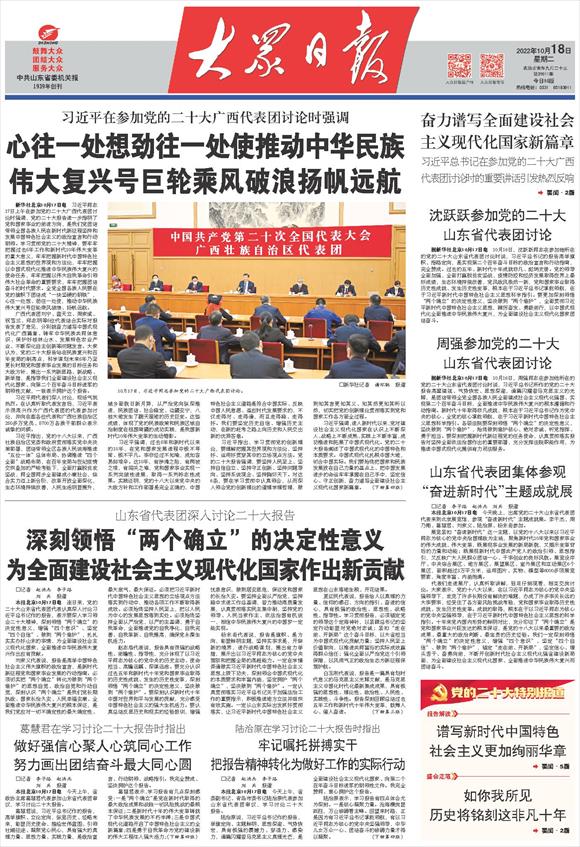 - 山东团代表议报告①丨奋进!在伟大复兴的新征程上2022-10-18