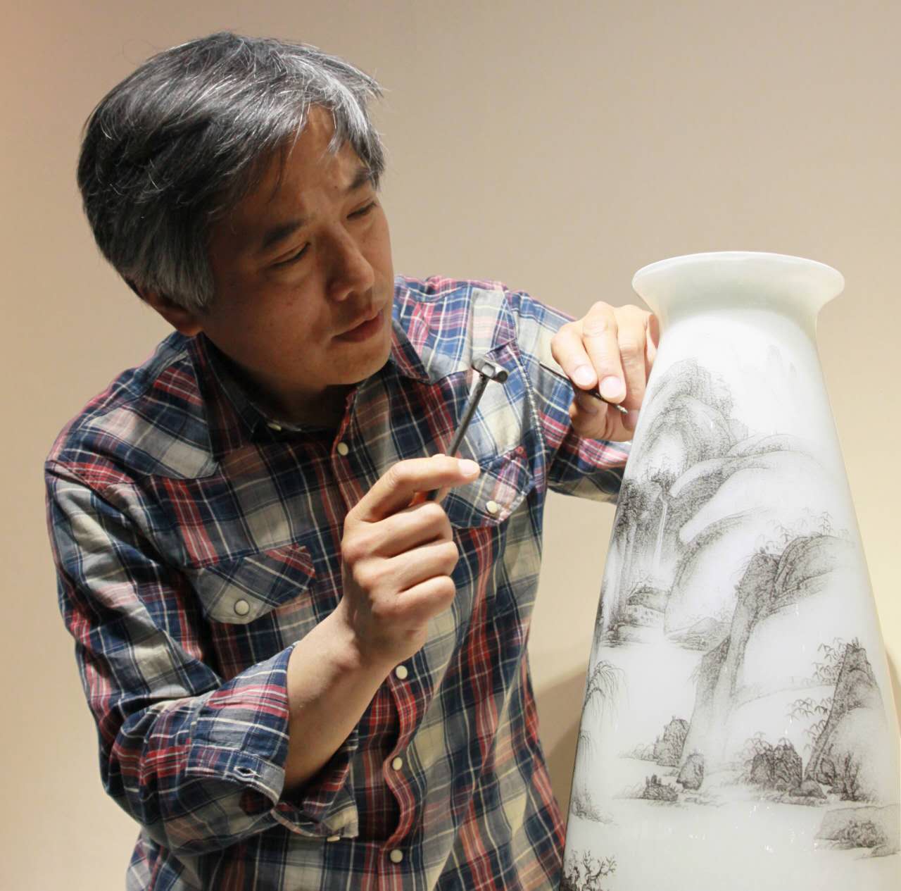 洗尽铅华,沉静如水,撇掉表面的浮躁,最后沉淀下来的就是博山陶琉艺人的工匠精神。就像胡建昌的作品那样,从鲁花釉刻瓷、博山琉璃錾刻,到陶艺烧造、陶瓷钢笔画,一路走来,始终如一,沉稳大气、美轮美奂,给人一种与世无争而又锋芒毕露的感觉。