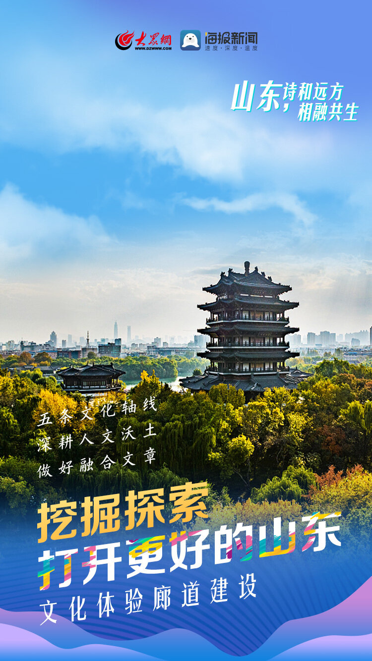 当前,山东文化体验廊道建设正在高标高效推进中。春光正好宜期待,期待假以时日,人们在齐鲁大地的一条条文化体验廊道中行走,会像是在进行一场场身临其境的穿越之旅。在时间和空间的穿行中,在诗和远方的相融共生中,我们都能摸得着厚重迷人的历史,嗅得到浓郁的文化芬芳,然后爱上一个更好的山东。(海报观察员:徐坤杰 美术设计:范云云)
