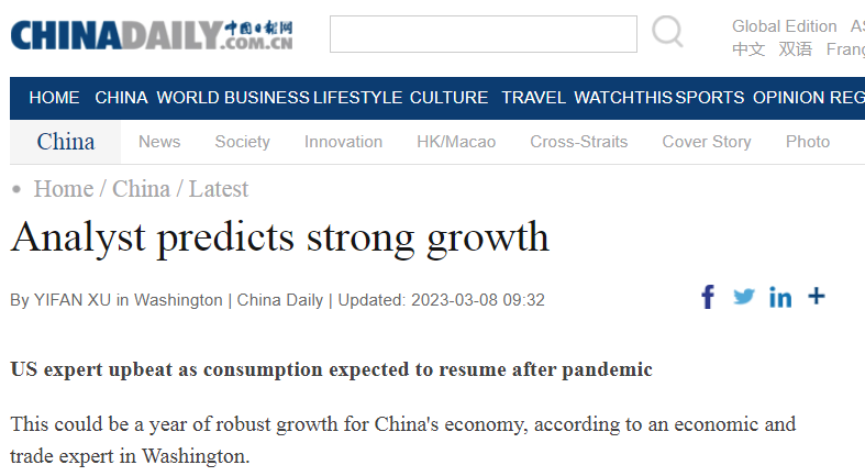 【中国那些事儿】美国专家:中国经济恢复步伐优于预期 2023年将实行强劲增长