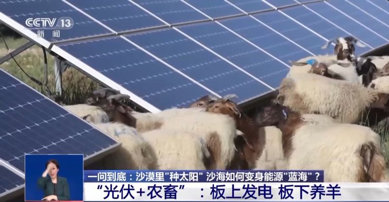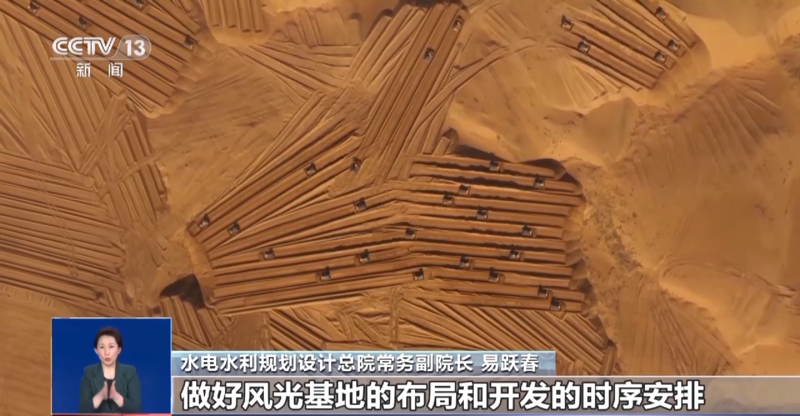 水电水利规划设计总院常务副院长 易跃春:通过建设光伏阵列自然形成防风沙的屏障,降低沙漠表面的风速,减少风沙和扬尘。通过建设大面积的光伏板能够有效减少太阳的直接辐射,降低地表水的蒸发,促进荒漠地区植被的恢复和生长。通过人工设置沙网、沙障,地表扎草方格,布设可降解纤维的沙袋,实现防沙、固沙、治沙。