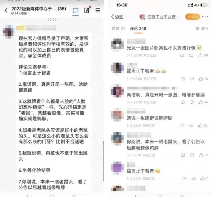 根据该网友的爆料显示,在一个名为“2022级新媒体中心......”的群聊中,群主发消息称,“现在官方微博发了声明,大家积极点赞和评论对学校有效的,发评论可加自己的表情包更真实。”随后还提供了数条“评论文案参考话语”。