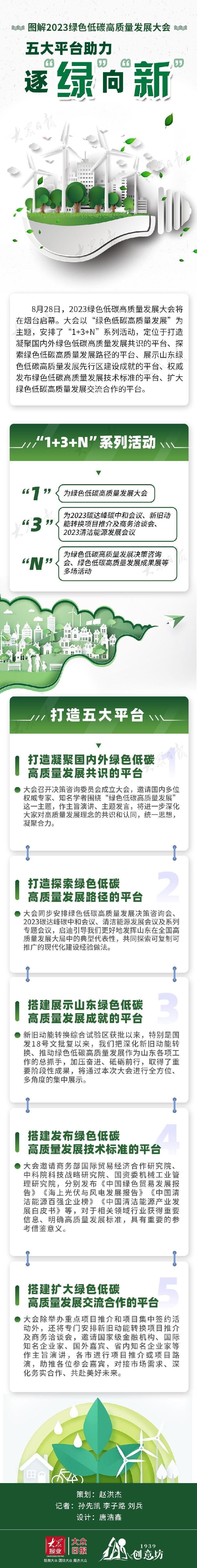 8月28日,2023绿色低碳高质量发展大会将在烟台市启幕。大会以“绿色低碳高质量发展”为主题,安排了“1+3+N”系列活动,定位于打造凝聚国内外绿色低碳高质量发展共识的平台、探索绿色低碳高质量发展路径的平台、展示山东绿色低碳高质量发展先行区建设成就的平台、权威发布绿色低碳高质量发展技术标准的平台、扩大绿色低碳高质量发展交流合作的平台。