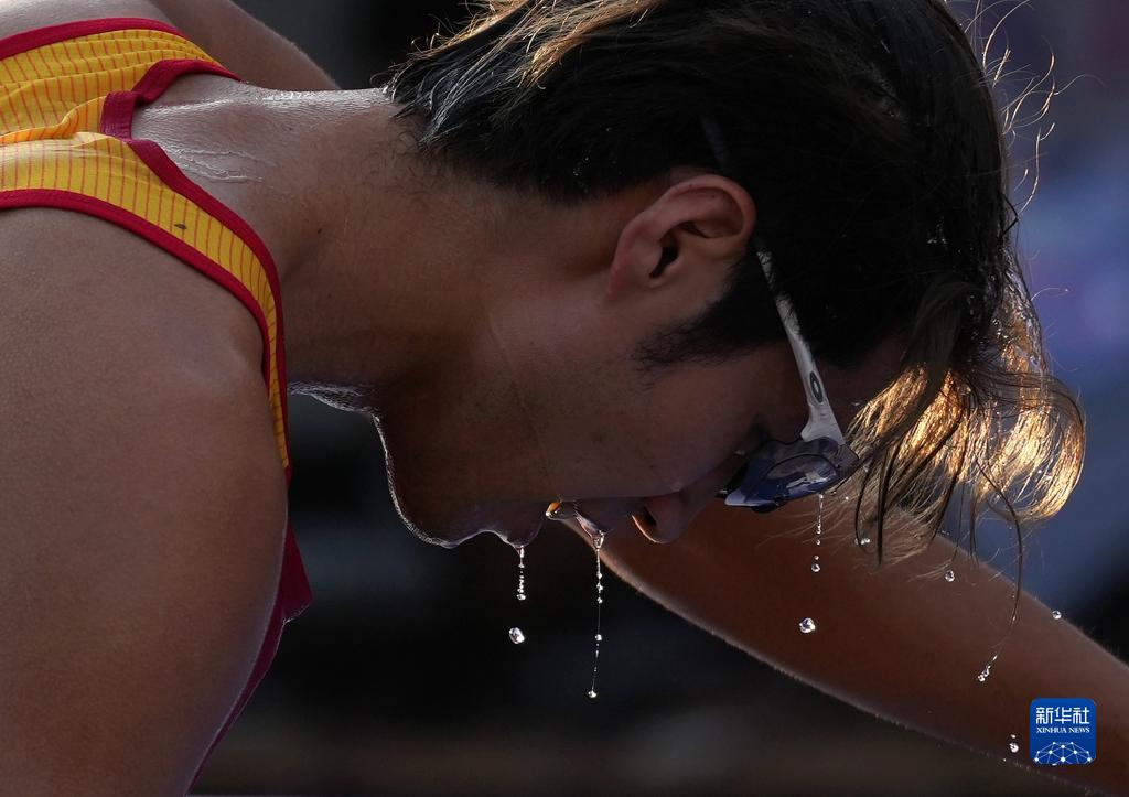 9月24日,中国选手李澍寰在激光跑比赛后调整休息,他以1484分的总成绩获得季军。