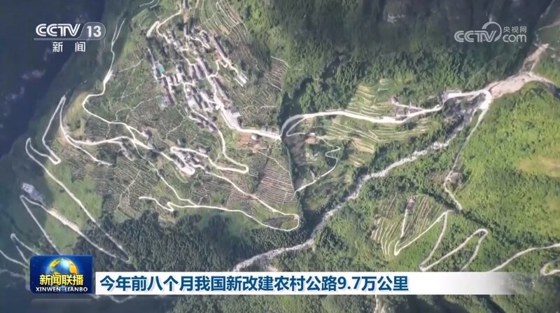 央视网消息(新闻联播):交通运输部最新数据显示,今年1—8月,我国新改建农村公路9.7万公里,完成全年目标的75%,农村公路建设取得扎实成效,便捷高效的农村公路网络基本形成。