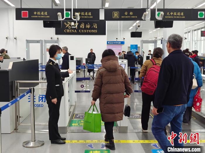 2024年1月1日,国产首制大型邮轮“爱达·魔都”号首航,上海海关所属宝山海关为该轮出境游客提供便捷通关指引,打造高效有序的通关环境。 辛承雨 摄