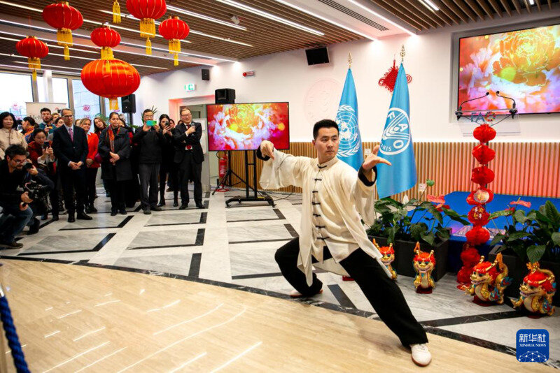 2月2日,人们在位于意大利罗马的联合国粮农组织总部观看太极表演。新华社记者 李京 摄