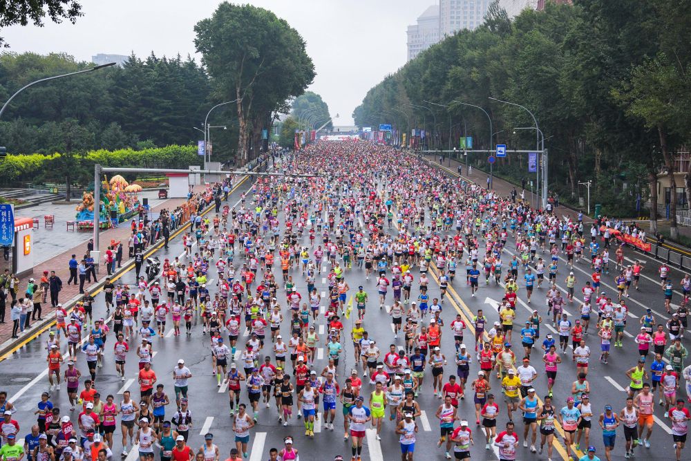 9月1日拍摄的2024一汽红旗长春马拉松现场。新华社记者 许畅 摄