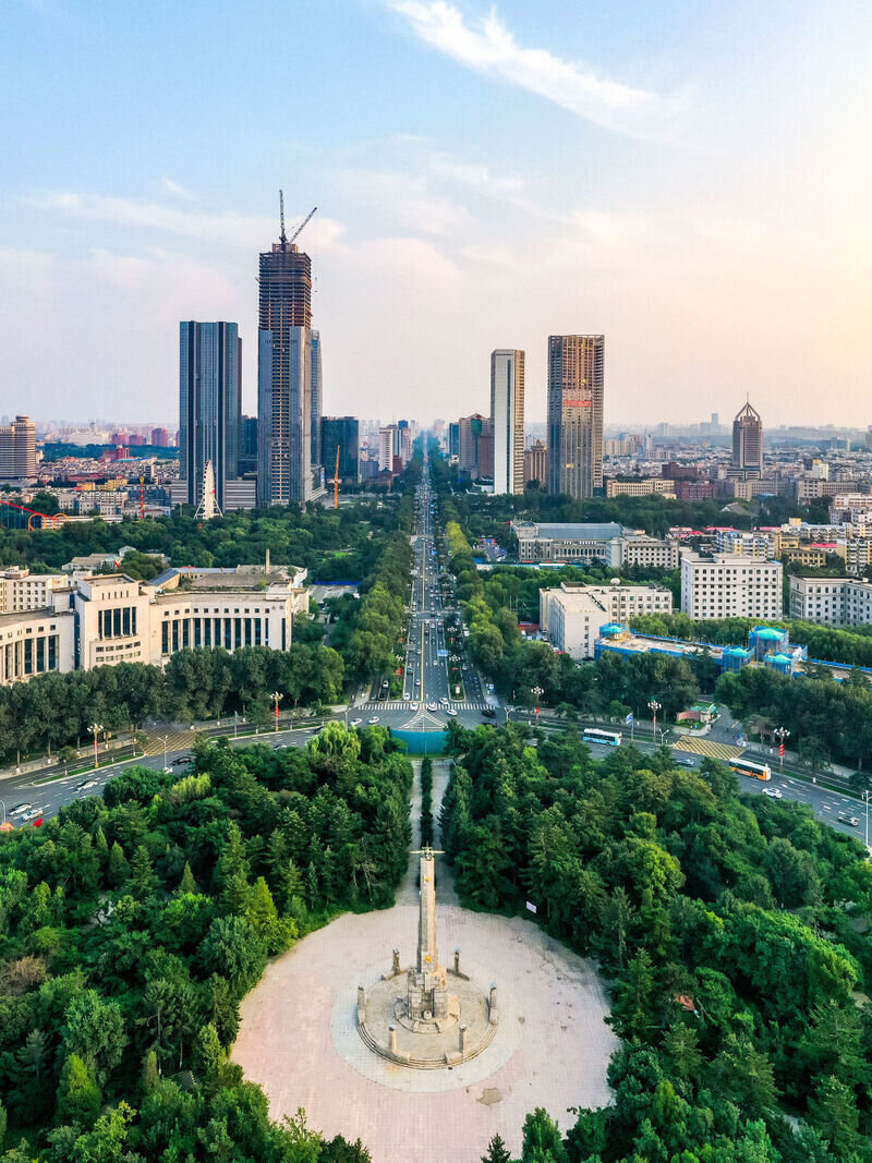 8月24日拍摄的长春市中轴线上的人民广场及人民大街(无人机照片)。新华社记者 许畅 摄