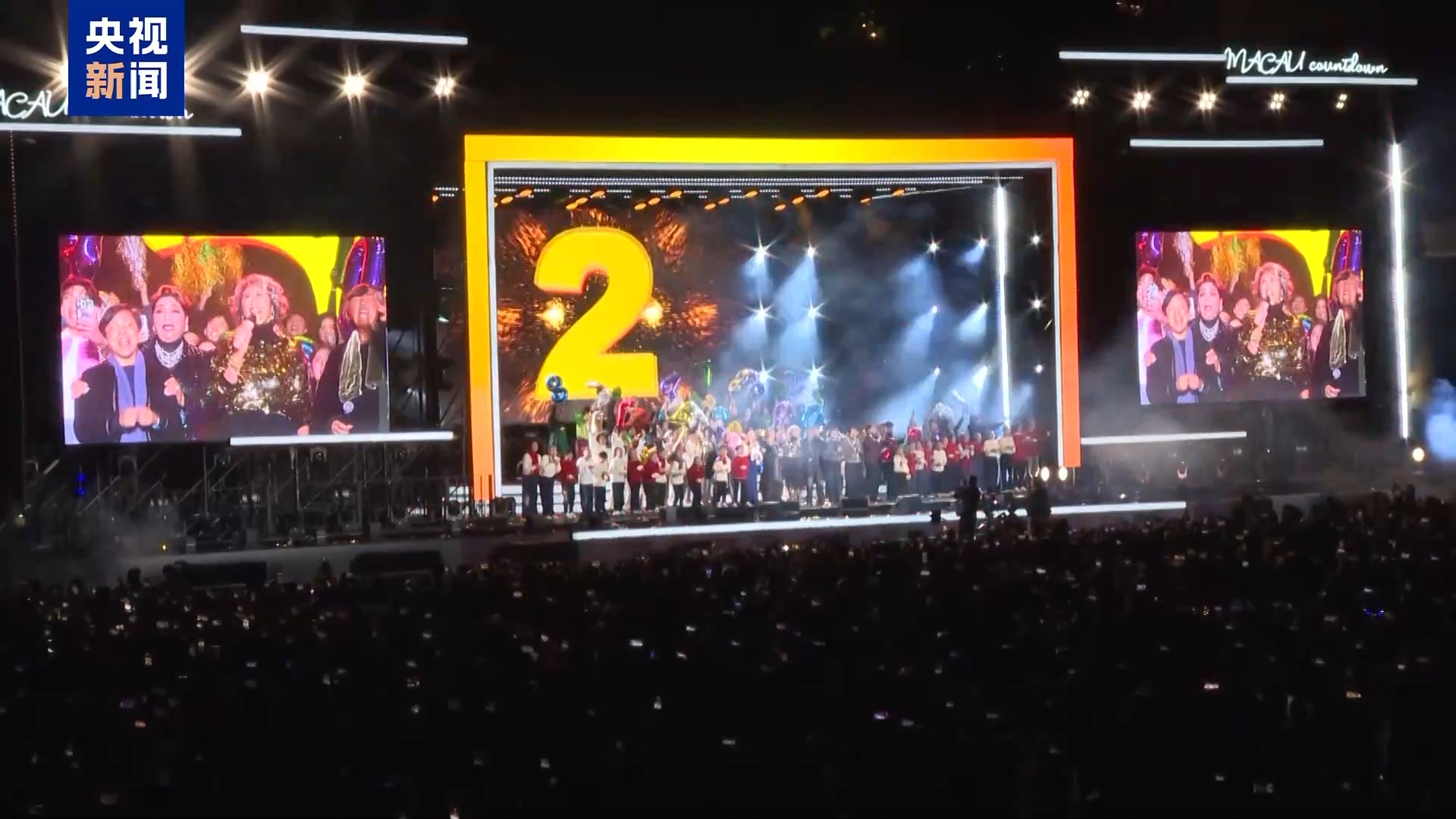 在澳门西湾湖广场举行的跨年倒数演唱会上,来自港澳地区的歌手以及乐队带来了活力四射的音乐和热情洋溢的舞蹈,吸引了近万名市民和各地游客共同参与,现场气氛喜庆热闹。