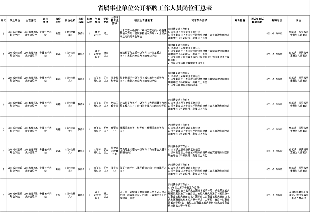 拟面向社会公开招聘工作人员8名。具体岗位及条件,详见《省属事业单位公开招聘工作人员岗位汇总表》。