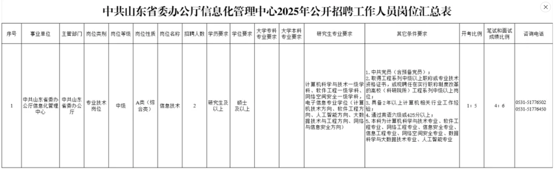 报名人员在规定的报名时间内登录中共山东省委办公厅信息化管理中心公开招聘报名网站