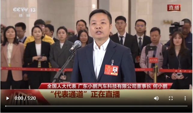 今天(3月8日),十四届全国人大三次会议第二场“代表通道”在人民大会堂举行,全国人大代表、广东小鹏汽车科技有限公司董事长何小鹏接受记者采访。