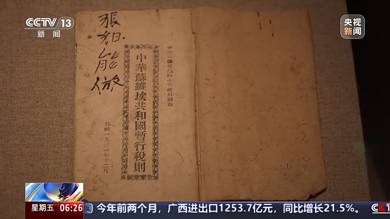 宁化县革命纪念馆讲解员 邱小红:《中华苏维埃共和国暂行税则》是赤色中国的第一部税法,我馆所展示的这本保存完整。它的封面采用的就是宁化玉扣纸。