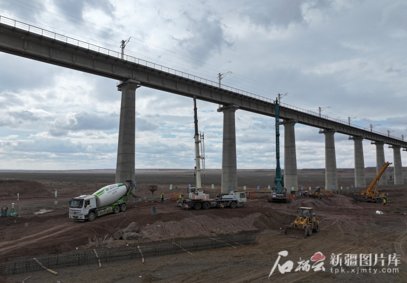 在将淖铁路增建二线工程别勒西1号特大桥施工现场,施工人员有的开挖防护桩基础,有的绑扎钢筋,有的浇筑混凝土,“施工现场7台旋挖钻机同时施工,预计6月底前完成大桥桩基施工作业任务。”该工程S3标段项目常务副经理沈自强说。别勒西1号特大桥全长4026.08米,是将淖增建二线工程一项重要的控制性工程,建设者加紧施工,为后续架梁施工奠定坚实基础。