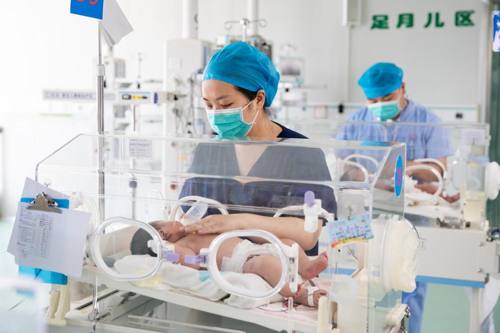 5月1日,护士在河南省商丘市睢县妇幼保健院护理新生儿。新华社发(徐泽源摄)