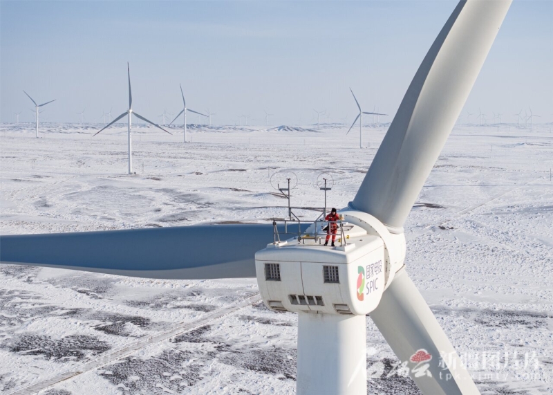 技术人员在木垒老君庙风电场检修风机(资料图片)。何龙摄