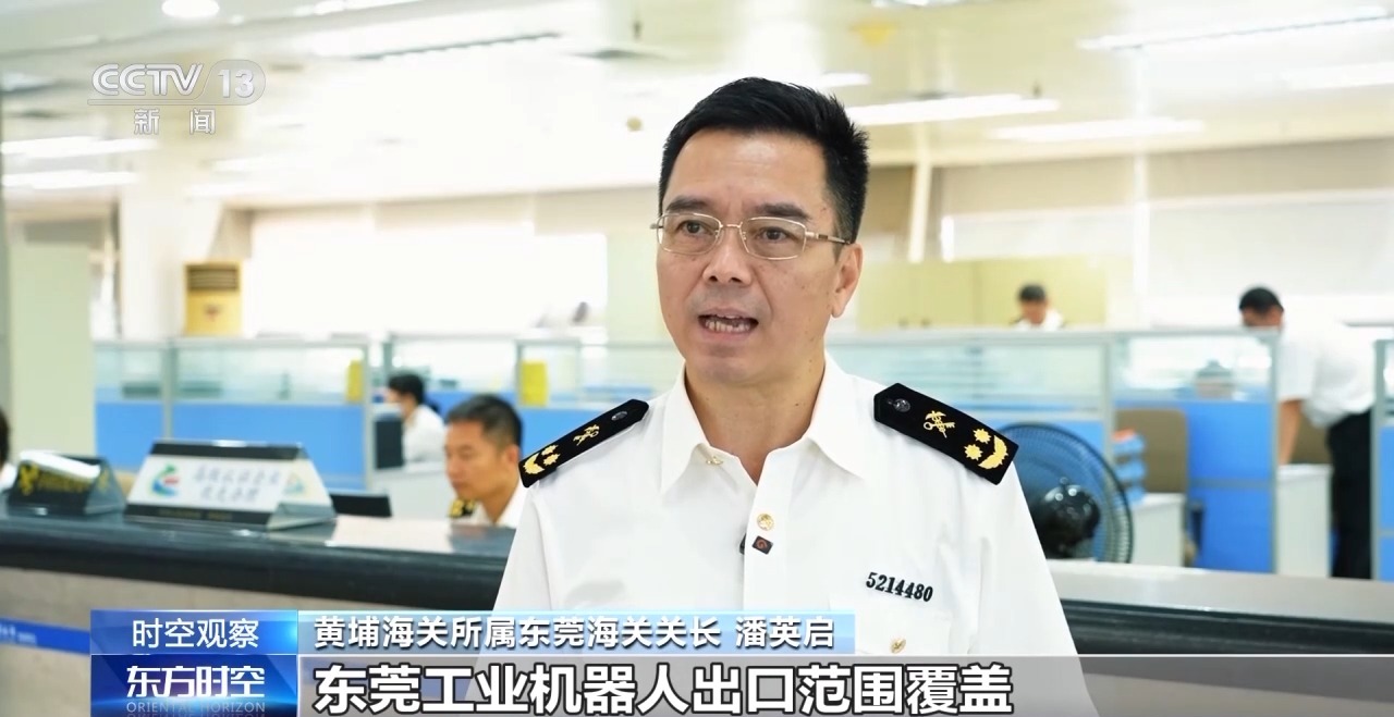黄埔海关所属东莞海关关长 潘英启:东莞工业机器人出口范围覆盖亚洲、欧洲、美洲等多个地区,出口产品类型丰富多样,涵盖焊接机器人、搬运机器人、装配机器人等多种工业应用场景的机器人。