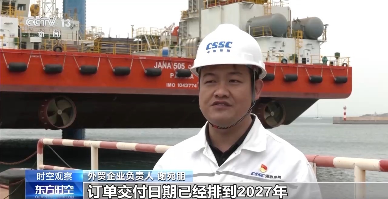 外贸企业负责人谢宛朋:目前,在建外贸平台及港机设备40余台,订单交付日期已经排到2027年。