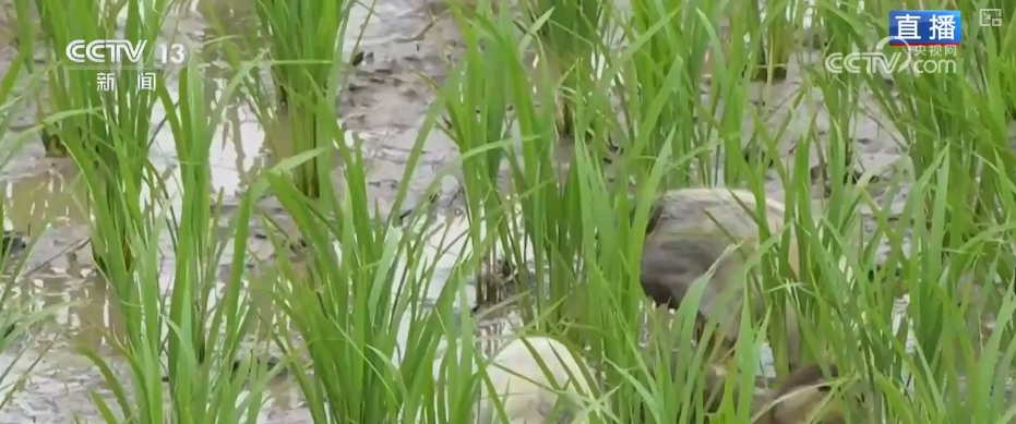 目前,当地已建成12套农业气象监测站,可实现对温度、湿度、降水、风速等关键气象要素的分钟级实时监测,为农业生产提供更加全面、精准的服务。 鸭子青蛙轮流“上岗” 绿色种稻好帮手