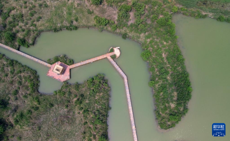 这是黄河三角洲国家级自然保护区内的湿地(5月14日摄,无人机照片)。