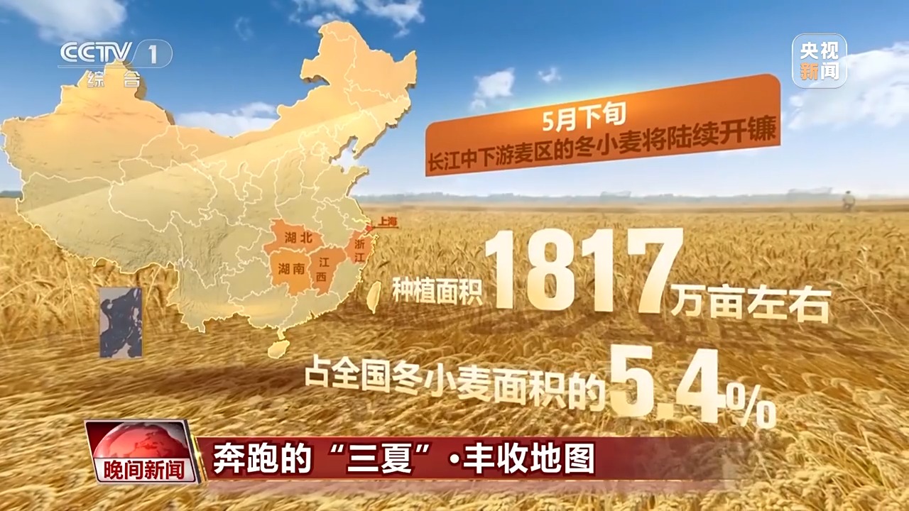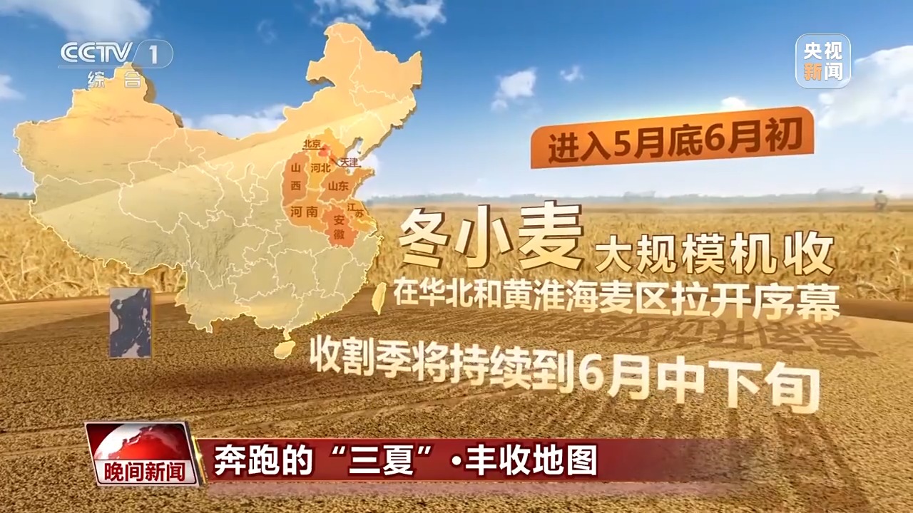 由南向北,我国冬小麦的收割期,将从5月中旬延续至7月初,确保今年的3.4亿亩冬小麦颗粒归仓。