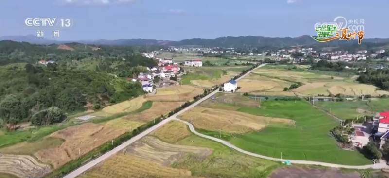 重庆以丘陵山地为主,土地资源十分宝贵,小麦一收获完,这里就会种上水稻、玉米等作物。像不远处的这块田,在10天前种的还是小麦,但是小麦一收割,这里就赶紧灌水,插上了水稻秧苗。经过十天的生长,现在水稻已经进入了分蘖期,到9月下旬左右,这些水稻就会迎来收获。