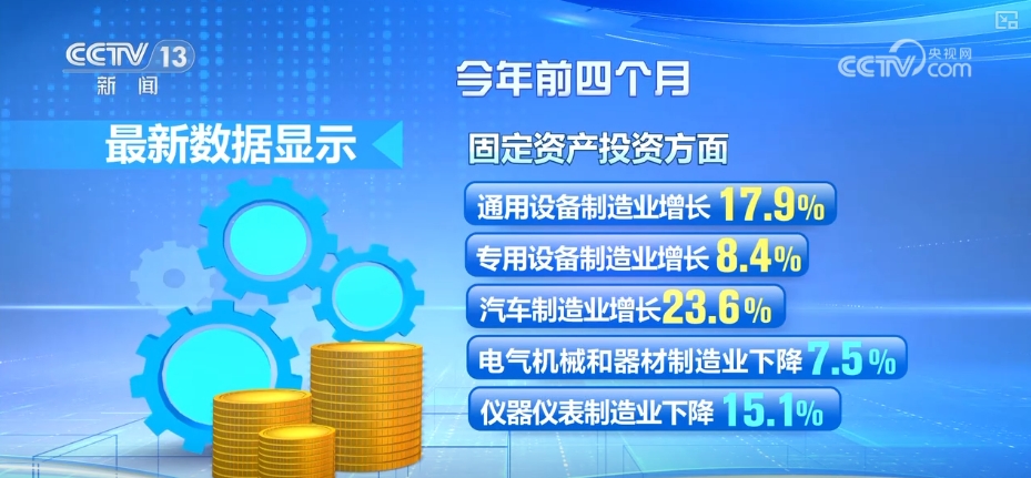 从主要数据指标来看,2025年前4个月,宏观政策组合效应持续释放,生产供给保持较快增长。在“两新”政策加力扩围和产业升级带动下,装备制造业持续较快增长。消费品以旧换新政策效应持续释放,国内需求稳步扩大。