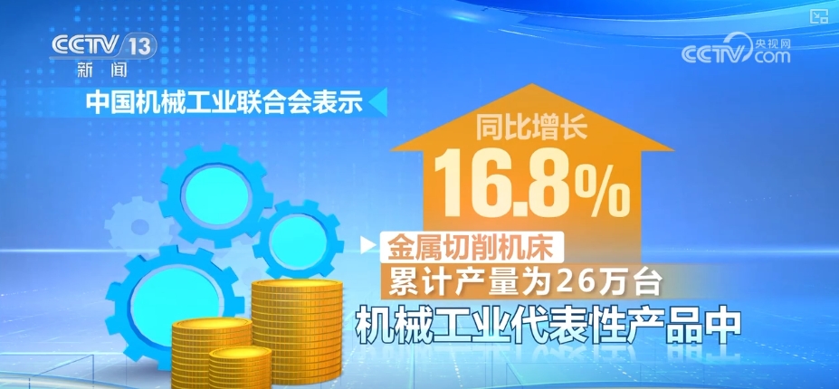 中国机械工业联合会表示,机械工业代表性产品中,金属切削机床累计产量为26万台,同比增长16.8%;工业机器人累计产量为22.1万套,同比增长34.1%,增长势头强劲。