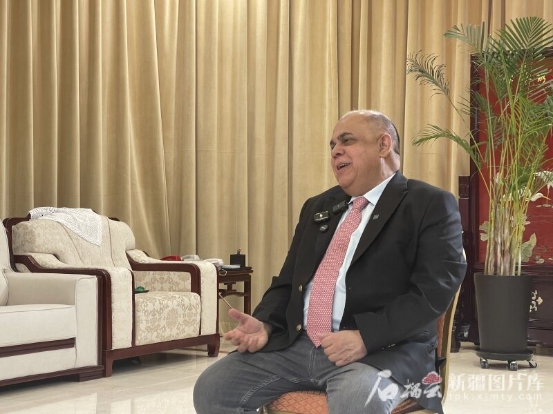 上合组织副秘书长索海尔·汗在专访中。石榴云/新疆日报记者 刘翔摄