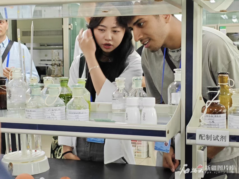 5月26日,2025上合组织国家媒体合作论坛嘉宾参观新奇康药业股份有限公司实验室。石榴云/新疆日报记者 宋海波摄