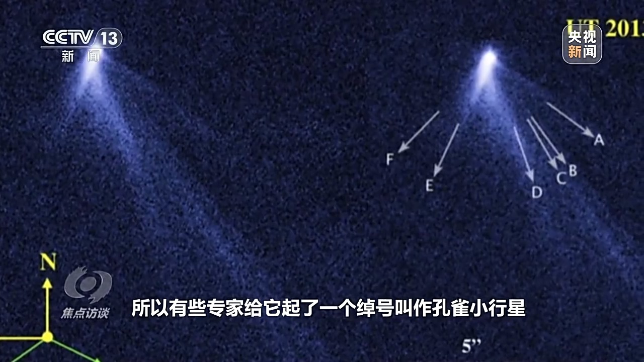 季江徽:整个太阳系里面除了大行星以外,还有很多小行星,大部分分布在火星轨道和木星轨道之间,这样一个区域就叫作主带,所以主带彗星轨道是在主带,它又像彗星,就像311P一样,有六个彗尾,像孔雀开屏一样,所以有些专家给它起了一个绰号,叫“孔雀小行星”。通过天问二号这样一个探测任务回答这些小行星、彗星、主带彗星之间的联系,可以给出很好的答案。