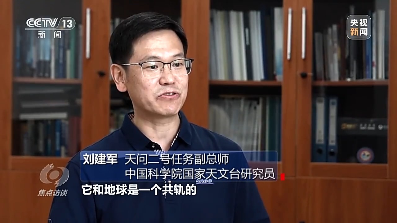 天问二号任务副总师、中国科学院国家天文台研究员 刘建军:这个小天体很有特点,我们叫它地球准卫星,它和地球是共轨的,也是绕着太阳公转。当初我们论证的时候只发现了五颗,现在应该是七颗了,非常稀有,物以稀为贵,对科学家来说希望探测了解。还有一个很重要的特点,工程可达性比较好,所以从科学和工程两方面结合,相当于一拍即合,我们就去干。