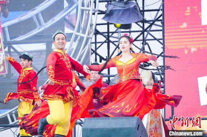 环塔拉力赛事举办期间,新疆多地上演民族歌舞表演。杨子涵 摄