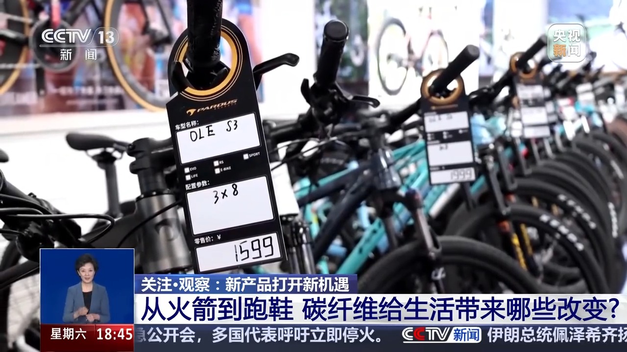 有一种材料,比羽毛轻,却比钢铁硬,集密度低、强度高、耐腐蚀、耐高温等诸多优点于一身,素有“黑黄金”的美誉,这种材料就是碳纤维。眼下,它不仅被用来造火箭、飞机、列车、桥梁,我们骑的自行车、穿的跑鞋、用的球拍、戴的眼镜,越来越多的生活用品当中也有了它的身影。从“高端装备”到“大众消费”,碳纤维给我们的生活带来了哪些改变?
