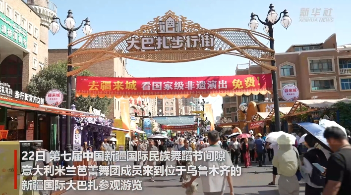 7月22日,第七届中国新疆国际民族舞蹈节间隙,意大利米兰芭蕾舞团成员来到位于乌鲁木齐的新疆国际大巴扎参观游览。在看到新疆民族舞蹈演员精彩表演后,意大利演员们跳起了芭蕾舞《罗密欧与朱丽叶》片段,令在场各地游客和观众大饱眼福。