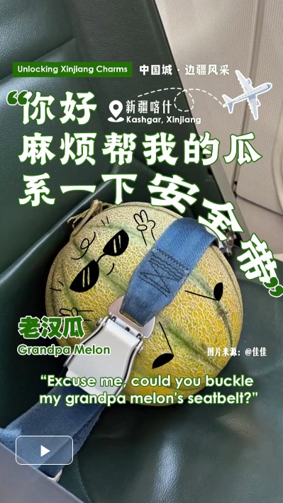 在新疆,一种名为“老汉瓜”的甜瓜,正悄然走红网络。因其皮薄、汁多、绵软香甜,连牙口不好的老人也能轻松食用,故得名“老汉瓜”。由于运输条件苛刻,不少游客干脆“人肉护送”——抱着瓜上飞机,甚至为它系上安全带,这一滑稽的景象也随即成为网络热梗。