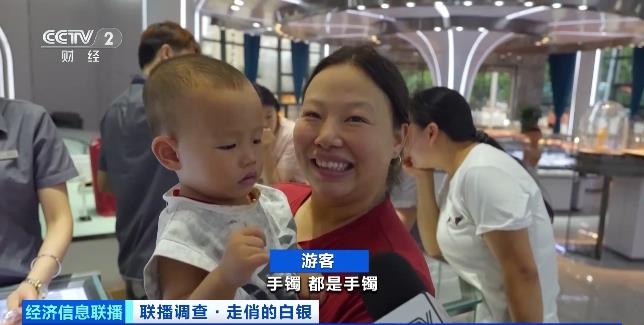 游客:我选了三样,都是手镯,(买)给我儿子。银价涨了,之前是(每克)七元多,现在(每克)8.7元了。