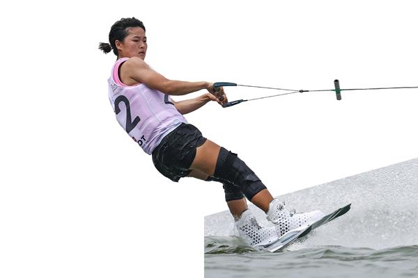 8月10日,四川成都,中国选手徐露在2025成都世运会女子尾波滑水自由式决赛中,以69.56分的成绩获得金牌。视觉中国供图