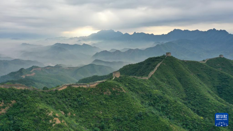 这是8月18日清晨在北京市密云区古北口镇拍摄的司马台长城(无人机照片)。