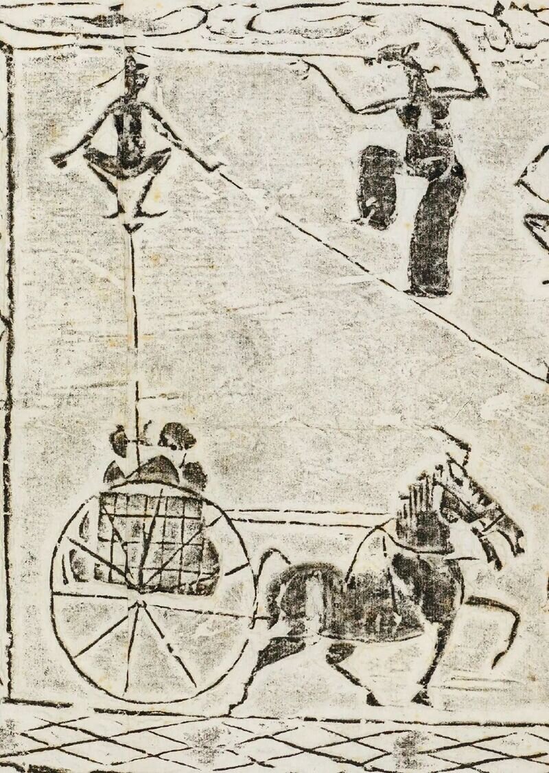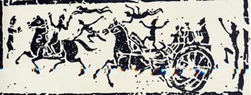 斜索戏车画像砖以线面结合的手法分层叙事