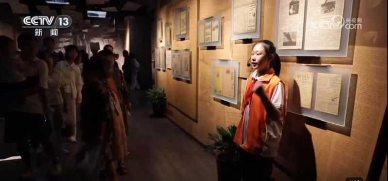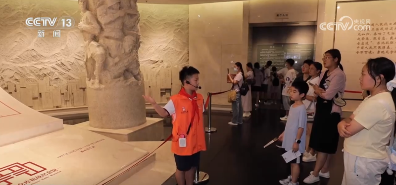 正在讲解的这位小朋友名叫韦嘉恩,是一名四年级的小学生。他告诉记者,之前从书本上读到过四行仓库的历史,这个暑假他专门报名参与到志愿讲解活动中,通过实地讲解,收获了更多思考和感悟。