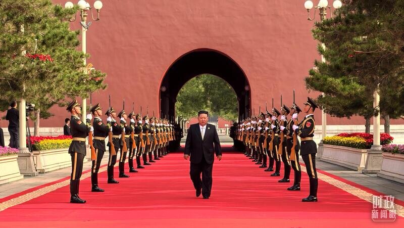 △9月3日上午,金正恩抵达端门外广场参加迎宾仪式。(总台央视记者李增仁拍摄)