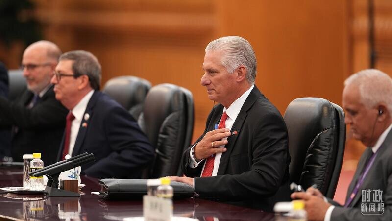 △古巴共产党中央委员会第一书记、古巴国家主席迪亚斯-卡内尔在会见中。(总台记者李晋拍摄)