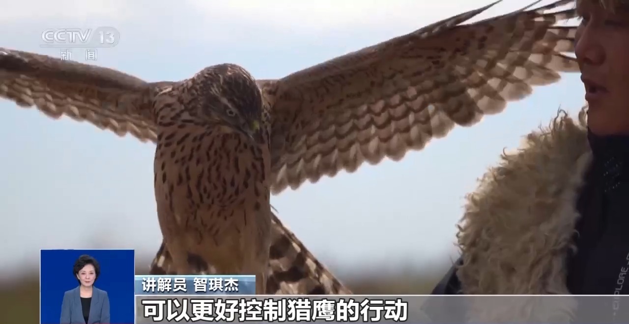 讲解员智琪杰:鹰尾铃挂在鹰尾巴上,会发出叮叮当当的响声,便于猎户知道它的去向。鹰绊绳是驯鹰专用绳,可以很好地控制猎鹰的行动。