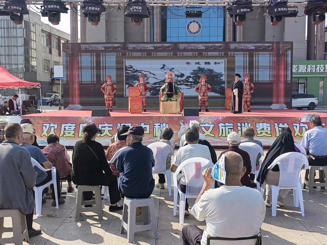 为让群众过个有滋有味的“双节”假期,2025年9月29日至10月2日,曹县在南湖人民广场办起“迎国庆·悦中秋”黄河大集文化艺术品交流会暨文化旅游消费月文艺演出。以往在剧院里上演的“一元大戏”,也特意搬到了广场中央,就是为了让更多百姓不用赶路、不花高价,在家门口就能过足戏瘾。