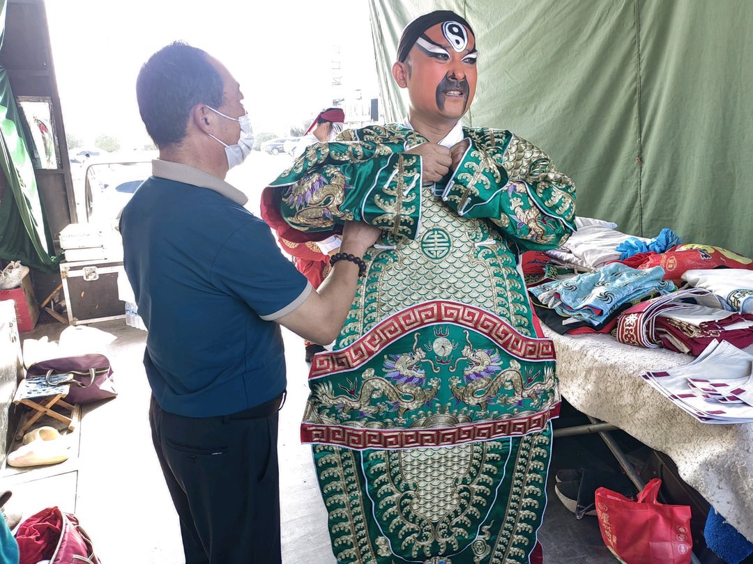 丁天佑在台上唱得投入,这场《雷振海征北》选段有半个多小时,几乎全程由他主唱,可丝毫不显疲惫。他说:“一年到头我要演400多场,大多是下乡演出,短则一天,长则五天,有时候一场戏2个多小时,我得唱1个多小时。累是累,但只要台下有观众,哪怕只有一位老人,我也得唱得字正腔圆。”