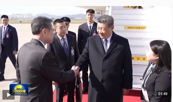 10月30日上午,习近平主席乘专机抵达韩国釜山金海国际机场。飞机落地后不久,中美元首会晤举行。这也是习主席抵达韩国后的第一场活动。