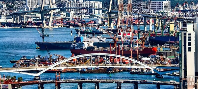 △韩国釜山繁忙的港口。(总台央视记者陈汉章拍摄)